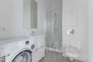 Санузел с душевой кабиной и стиральной машиной.