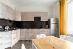В квартире есть: двуспальная кровать, односпальная раскладная кровать (за доп. плату), телевизор, интернет, новая мебель, чайник, холодильник, стиральная машина. В апартаментах имеется кухня со всем необходимым для приготовления вкусного домашнего обеда.