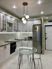 В квартире есть все самое необходимое для комфортного проживания : плита, духовка, холодильник , стиральная и посудомоечная машинки, два телевизора.