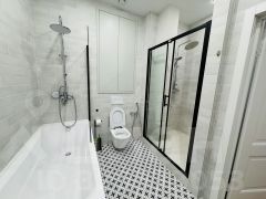 Ванная комната: оборудована ванной и душевой кабиной, современная сантехника и дизайн создают ощущение свежести и удобства.