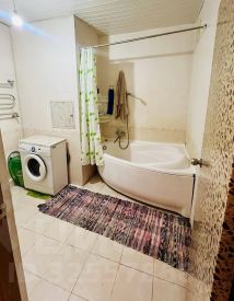 В ванной комнате вас ждет просторная ванна с удобной выемкой для сидения и душевой шторкой, широкая раковина с полкой, зеркало и стиральная машина. В туалете также установлен умывальник.