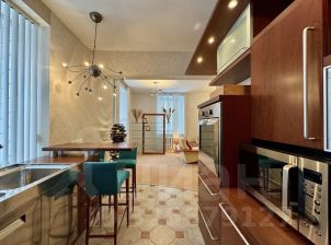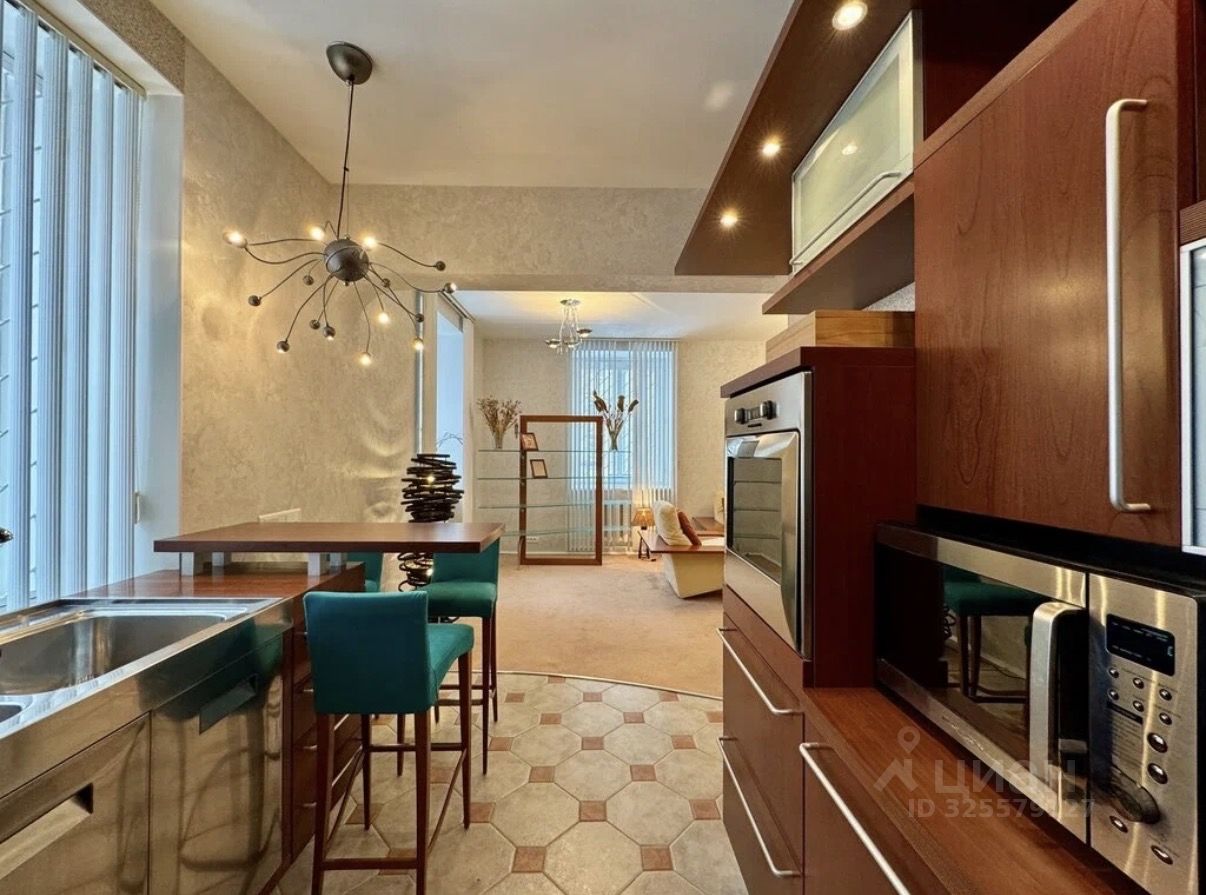 Кухня площадью 9 м² оборудована необходимой техникой, включая холодильник, электрическую варочную поверхность и духовой шкаф, посудомоечную машину, микроволновую печь. В гостиной установлен диван и телевизор. В спальне большая кровать и вместительные шкафы.