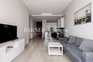 В апартаменте выполнена современная и стильная отделка. Функциональное планировочное решение: просторная гостиная с зоной кухни, спальня, гардеробная, санузел.