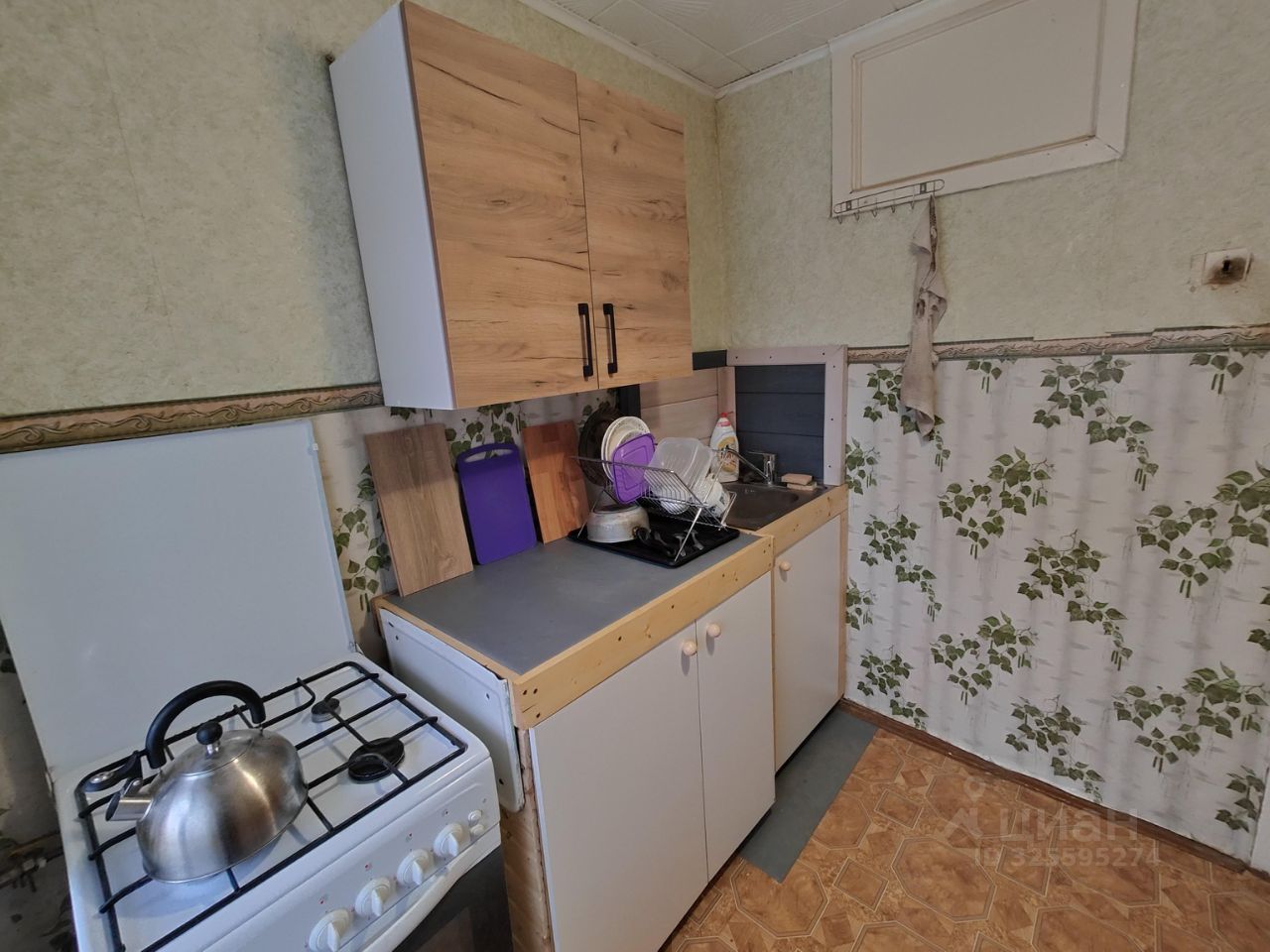 В жилом состоянии, есть всё необходимое. На кухне газовая плита, двухкамерный холодильник, новые шкафы, необходимая посуда, тараканов нет. В ванной стиральная машина автомат, полноценная ванна 150 см. В комнате диван, новый шкаф, стол, стулья.