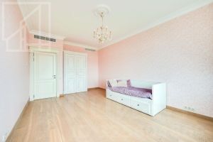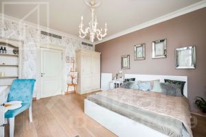 Планировка: гостиная, кухня с обеденной зоной, 3 спальни, 2 совмещенных санузла, гардеробная. Квартира меблирована и оснащена всей необходимой для комфортного проживания бытовой техникой. Предусмотрены система кондиционирования, обогрев полов, бойлер. Вид из окон на Чапаевский сквер и фонтан во внутреннем дворе.