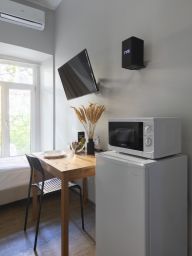Все номера оснащены индивидуальной ванной комнатой с душевой кабиной, феном и бесплатными косметическими принадлежностями. Ключевым преимуществом является наличие в каждом номере мини-кухни, оборудованной холодильником, микроволновой печью и электрическим чайником. Для комфортного отдыха номера укомплектованы умной колонкой "Алиса", позволяющей управлять сервисами голосом.