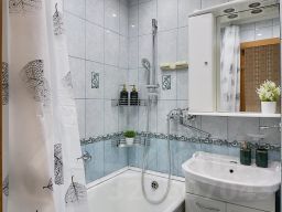 Комфорт и удобства Большая двуспальная кровать и раскладной диван — комфортно разместятся до 4 гостей. Современный шкаф, жалюзи и мягкое освещение — всё для удобного сна и хранения. Полностью оборудованная кухня: варочная панель, холодильник, микроволновка, чайник, стиральная машина и вся необходимая посуда. Санузел с ванной, душем, раковиной и сушилкой — приезжайте налегке, всё уже есть. Телевизор, уютный декор и рабочая зона — удобно для отдыха и удалённой работы.