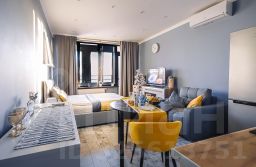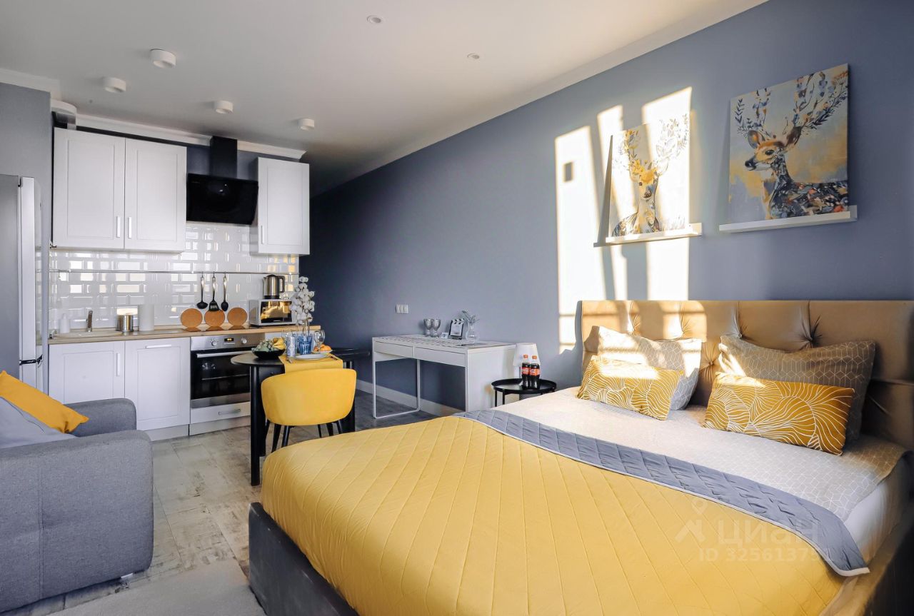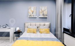 - Большая кровать с удобным матрасом, постельным бельем из страйп-сатина. Яркие акценты, такие как желтые подушки и плед, создают атмосферу солнечного настроения даже в пасмурные дни. Скоростной Wi-Fi и современное SMART TV.