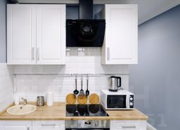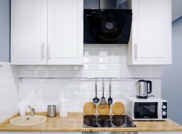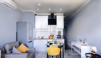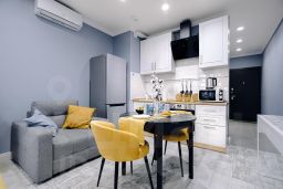 - Современная кухня в полной комплектации, будто приглашает приготовить что-то вкусное и провести время за уютным ужином. Мини-бар позволит вкусно перекусить в перерыве между делами.