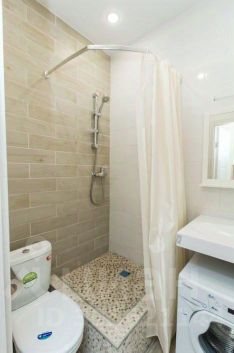 - Ванная комната с душем и стиральной машиной