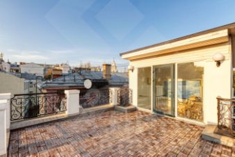 Предлагается в аренду стильная, просторная квартира-мансарда с террасой. Дизайн квартиры выполнен в стиле "Лофт". Гостиная совмещена со столовой зоной и зоной кухни. 2 спальни со своими санузлами и гардеробными, полноценный гостевой санузел c душевой и постирочной при входе в квартиру, бойлер. Квартира со вкусом меблирована, дополнена стильными предметами интерьера и укомплектована всей бытовой техникой ведущих европейских производителей. Оснащена системой кондиционирования, система "теплый пол". Окна выходят на 2 стороны. Не шумно, вторая линия домов.