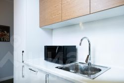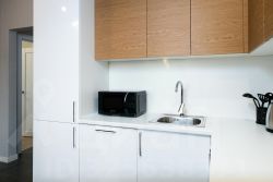 — Полностью оборудованная кухня: плита, холодильник, микроволновка, чайник, кофемашина