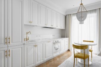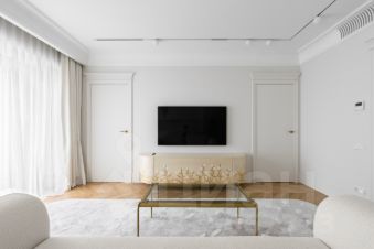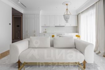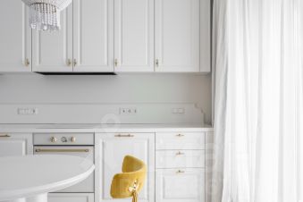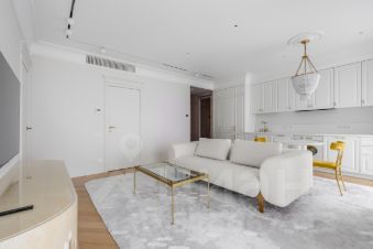 Кухня площадью 28 м² оборудована всем необходимым: холодильник, посудомоечная машина, варочная панель. В гостиной установлен телевизор и современная мебель. В спальне стильное оформление стен, удобная кровать и вместительный шкаф.