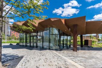 Первые этажи здания отведены под площади коммерческого назначения и службы быта. Входы в эти помещения организованы по периметру новостройки.