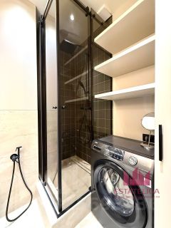 Совмещенный санузел с душевой кабиной, зеркало, полотенцесушитель, новая стиральная машина.