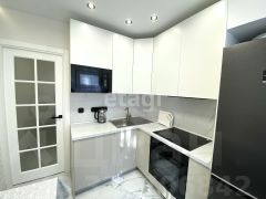 Уютная кухня с обеденной зоной, имеется варочная панель, вытяжка, духовой шкаф, холодильник, стиральная машина, СВЧ. Из гостиной есть выход на балкон, на котором проведен свет, теплый пол и установлен пластиковый стеклопакет .