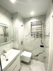 В гостиной для приятного отдыха расположен диван. Продуманный санузел с ванной с теплыми полами.