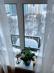 Квартира выходит на солнечную сторону с панорамным видом на лес, окна практически в пол.