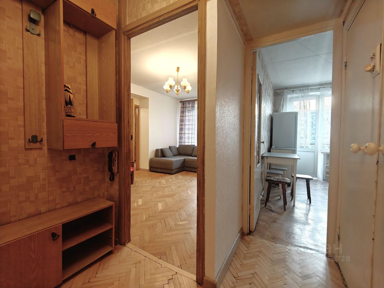 Комнаты смежные, то есть проход из одной комнаты через другую. В квартире имеется вся необходимая мебель: гарнитур, шкафы, большая 2х спальная кровать. На кухне газовая плита, современный холодильник.