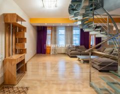 .Планировка: 1-й уровень: кухня-гостиная с обеденной зоной, детская с гардеробной, полноценный с/у. 2-й уровень: спальня, просторный санузел, тренажеры. Меблирована и оснащена современной бытовой техникой. Установлены теплые полы и сплит-система. Окна в сквер с видом на Храм и во двор. Огороженная территория, круглосуточная охрана. Одно м/м в подземном паркинге включено в стоимость аренды, также во дворе организована парковка. В квартире: Посудомоечная машина, Стиральная машина, Спутниковое/кабельное телевидение, Охрана, Интернет, Можно с детьми, Лифт, Телевизор,