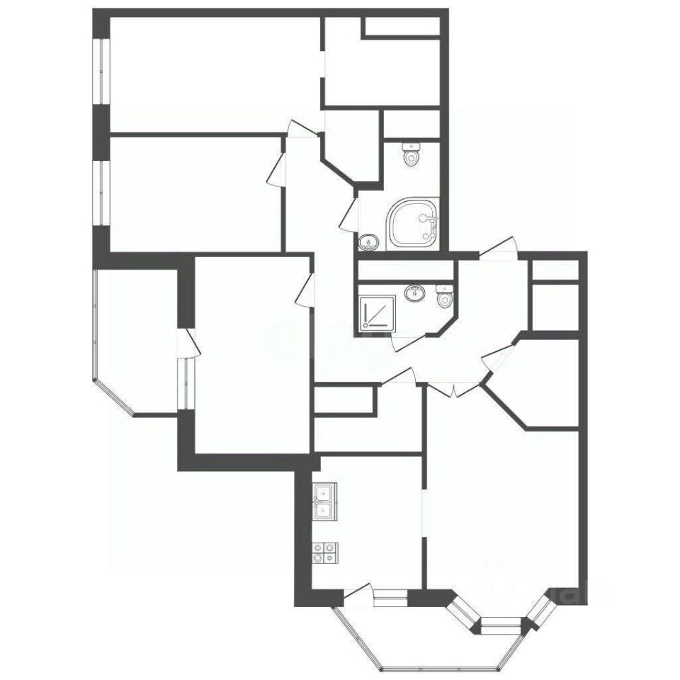 Гостиная, небольшой кабинет, 3 изолированные спальни, 2 санузла (1 с гидромассажной ванной и 1 с душем). 2 просторных застекленных и отделанных балкона.