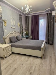 Все помещения меблированы: мебель есть как на кухне, так и в комнате, двухспальный диван, большая кровать и небольшой раскладывающийся диван на кухне, много места для хранения вещей. Ванная комната оборудована большой ванной с тропическим душем, раздельный санузел, в квартире установлены кондиционеры, холодильник, телевизоры, стиральная и посудомоечная машина, микроволновка. Окна спальни выходят во двор с парком Крылья Советов, что обеспечивает тишину и спокойствие. Есть 2 балкона.