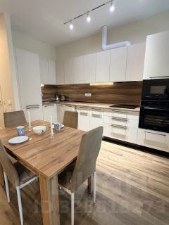 Квартира оборудована всей необходимой бытовой техникой: СВЧ, посудомоечная машина, духовой шкаф, варочная панель, вытяжка, стиральная машина.