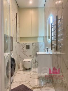 - Кухня с техникой (холодильник, микроволновка, духовой шкаф, посудомоечная машина), стирально-сушильная машина, кондиционер в каждой комнате, две гардеробные.