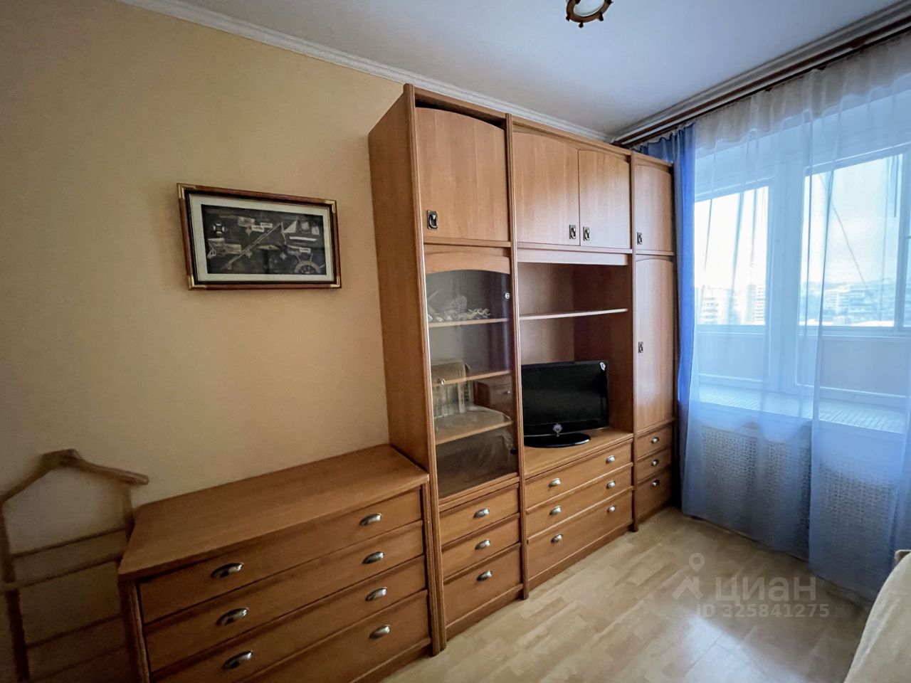 Большая комната - спальня-гостиная оформлена в восточном стиле. Угловой диван разбирается в двуспальный. Хорошее ортопедическое основание с индивидуальными пружинами. Одному можно спать не разбирая. Шкафы, комод, раскладной стол, компьютерный стол. Большое окно во всю стену. Деревянный стеклопакет. Выход на застеленную лоджию 8 кв.м.