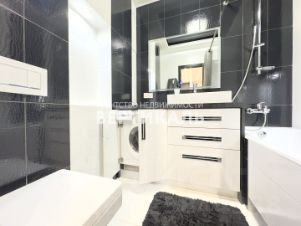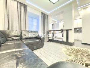 В квартире имеется отдельная гардеробная комната; совмещенный санузел; теплые полы; в гостиной - серебристая паркетная доска, в кухне - плитка; барная стойка, подоконники и столешница в ванной комнате из натурального шлифованного гранита; кухонный гарнитур со всей необходимой встроенной бытовой техникой; кондиционер; многоуровневая система освещения; ТV; проведен интернет.