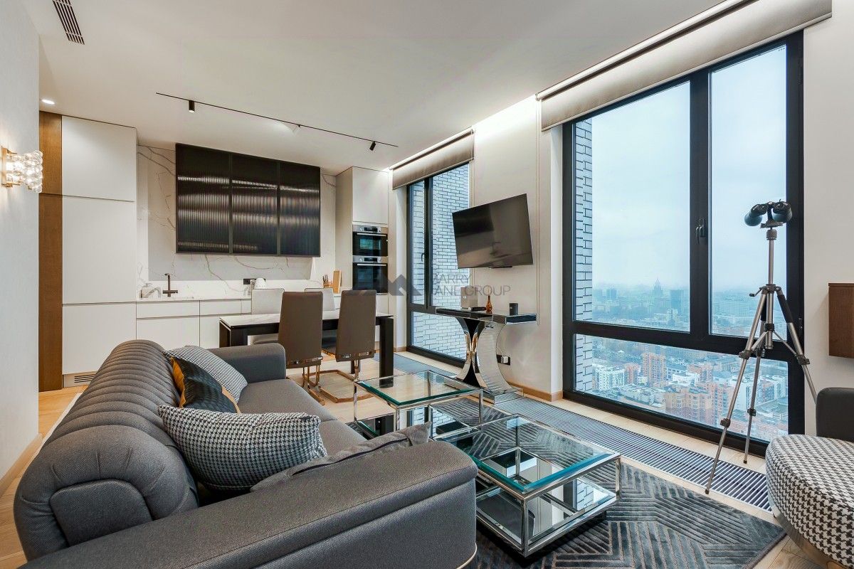 ВНИМАНИЕ! Квартира освобождается 17 февраля. Просмотры возможны по предварительной договоренности. В аренду предлагается стильная квартира в ЖК Пресня Сити! Со вкусом выполненный дизайнерский ремонт, завораживающая панорама на исторический центр, набережную и Москва Сити никого не оставят равнодушным. Высококачественные отделочные материалы (техника Bosch, сантехника Villeroy and Boch), идеально спланированное пространство, изолированная спальня с системой хранения, просторная зона кухни-гостиной, из которой в любое время суток открываются потрясающие виды на Москву. Юго-западные окна, квартира залита светом. Подземный паркинг и вся необходимая инфраструктура на территории ЖК. На территории комплекса к Вашим услугам: модное пространство Зотов Центр с кинотеатром, выставочными пространствами и лекториями, супермаркет Мираторг, салоны красоты, студии флористики, уютные кофейни, 2 ресторана, в 5-ти минутах World Class и 2 студии йоги. Квартира сдается на длительный срок от года! Строго без животных.