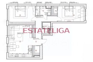 Функциональная планировка квартиры: просторная гостиная, плавно перетекающая в кухню, просторная спальная комната, вторая спальная комната с рабочей зоной и гардеробной, два совмещенных санузла, один из них с полноценным хаммамом, холл с местами для хранения, отдельная гостевая гардеробная.