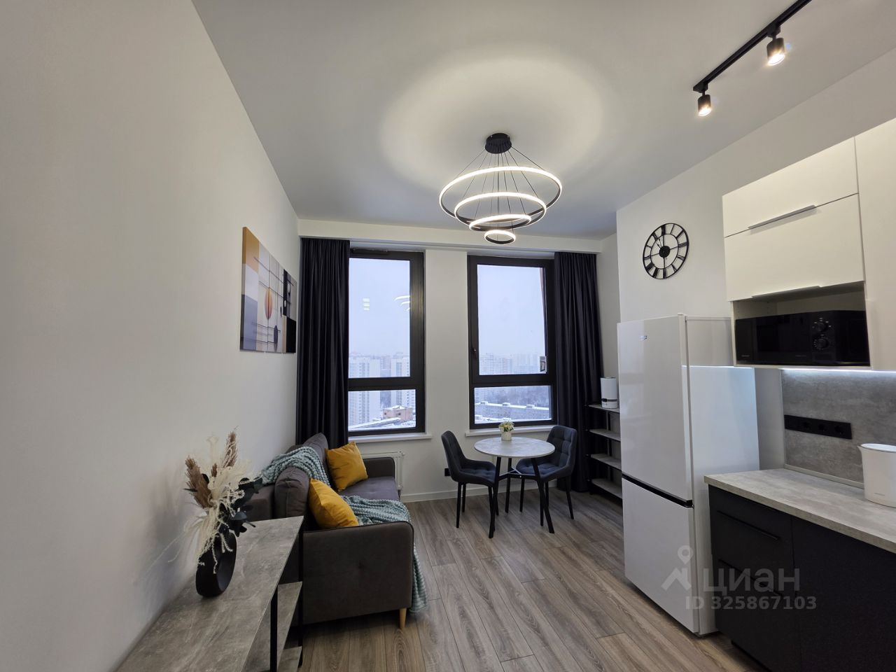 Панорамные окна открывают прекрасный вид на город и обеспечивает естественное освещение квартиры