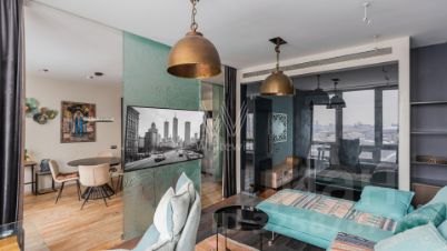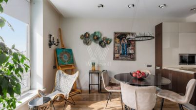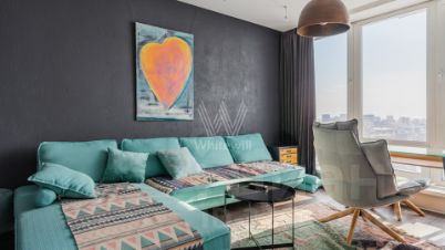 Квартира с 3 спальнями общей площадью 126 м² в квартале бизнес-класса "Аэробус" на 22 этаже. Выполнена дизайнерская отделка в современном стиле. Панорамные окна и высокие потолки наполняют пространство светом и воздухом. Спланирована гостиная, кухня с обеденной зоной, мастер-спальня с ванной комнатой, 2 спальни, одна из которых с гардеробной, санузел с душевой, прихожая. Квартира полностью меблирована и оборудована бытовой техникой, установлена система кондиционирования. Из окон открывается вид на город.