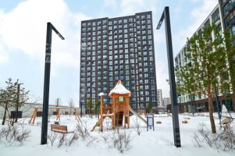 Новый жилой комплекс с благоустроенной территорией, парком, собственной набережной с прогулочными зонами и беседками для отдыха.