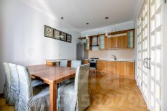 ID 26569. Стильная 3х-комнатная квартира с качественной отделкой в современном стиле в районе Патриарших прудов. Квартира предлагается с мебелью, вывоз мебели обсуждается. Современная бытовая техника, полностью оборудованные кухня, ванная, гардеробная, кондиционеры. Общая площадь 100 кв.м., функциональная планировка: гостиная, изолированная кухня, спальня, кабинет, ванная комната и туалет. В подъезде консьерж. В стоимость включено место на охраняемой парковке. Можно с детьми. Без животных.