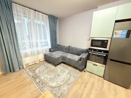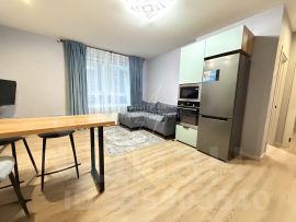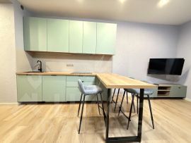 • Кухня-гостиная с современным кухонным гарнитуром, встроенной техникой и зоной отдыха.