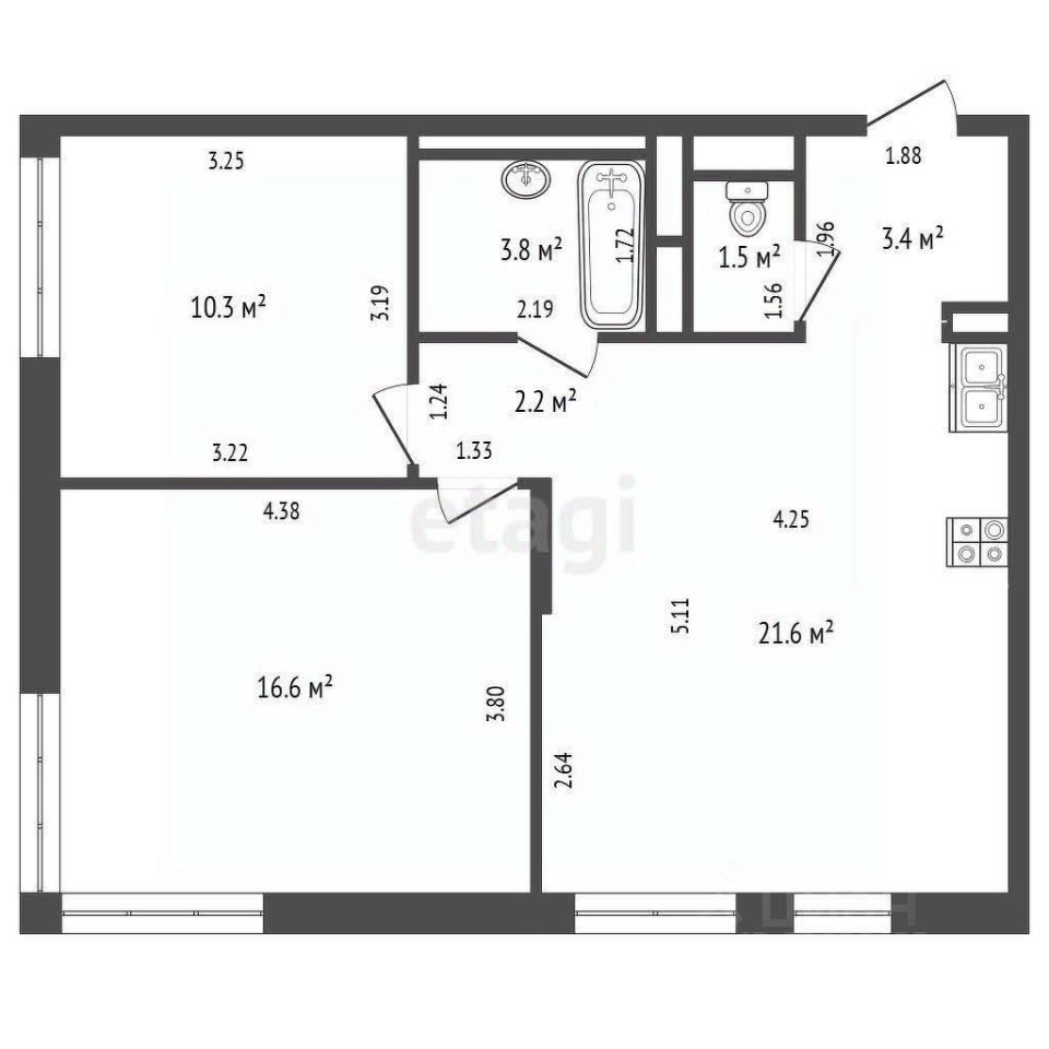 Номер в базе: 10422258.Просторная светлая квартира формата евро-3 в жилом комплексе VANGARDEN!