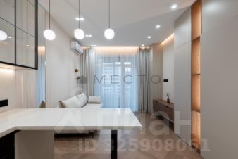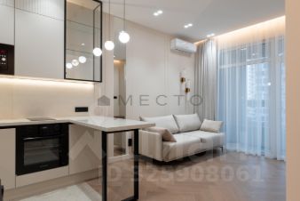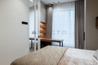 Светлая квартира с дизайнерским ремонтом. На полу - паркетная доска. Во всей квартире шумоизоляция и подогрев полов. Установлены кондиционеры как в спальне, так и в кухне-гостиной.