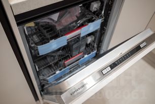 Кухня укомплектована немецкой техникой: посудомоечная машина, холодильник, духовой шкаф, вытяжка и микроволновая печь.