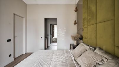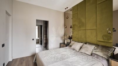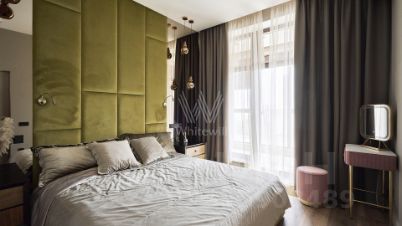 Квартира с 3 спальнями общей площадью 110 м² в комплексе RedSide. Выполнен дизайнерский ремонт в контрастных оттенках. Планировка: гостиная-столовая, мастер-спальня со своей гардеробной и ванной комнатой, гостевая спальня, детская, санузел, гардеробная. Кухня оснащена необходимой бытовой техникой и включает обеденную группу на 6 персон. В детской установлен мягкий угловой диван, в основной спальне — двуспальная кровать с мягким изголовьем. Благодаря увеличенным окнам в квартире много света. Из окон открывается вид на внутреннюю территорию комплекса.