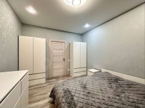 В квартире выполнен современный евроремонт, поэтому вам будет комфортно и приятно здесь находиться. Для вашего удобства в квартире есть 2 кондиционера, холодильник, посудомоечная и стиральная машины, а также 2 телевизора. Мебель имеется как на кухне, так и во всех комнатах, поэтому можно сразу въезжать и жить. Ванная комната оборудована ванной. Планировка квартиры включает два отдельных санузла и одну лоджию, окна выходят во двор, поэтому здесь всегда тихо.