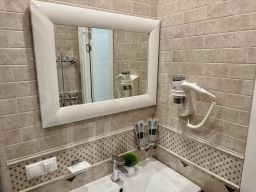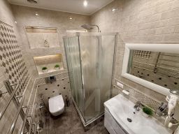 В ванной комнате белоснежные халаты (по запросу), современный мощный фен "Dysоn", набор косметических и гигиенических принадлежностей, стиральная машина, мягкие хлопковые полотенца.