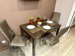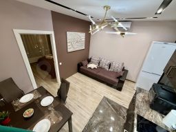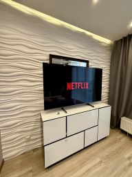 В апартаментах для удобства гостей имеется двухспальная кровать 160х200 см с ортопедическим матрасом Аsсоnа, премиальное белоснежное постельное бельё, мягкие подушки и одеяло, увлажнитель воздуха, кондиционер, утюг, зарядные устройства, сейф, Smаrt ТV на 1000 каналов, доступ к онлайн кинотеатрам бесплатно, стабильный wi-fi.