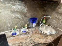Для комфортного пребывания и приготовления пищи на кухне имеется чайник, микроволновая печь, электрическая плита, кофемашина и капсулы, посудомоечная машина, вместительный холодильник, электрический духовой шкаф, посуда.