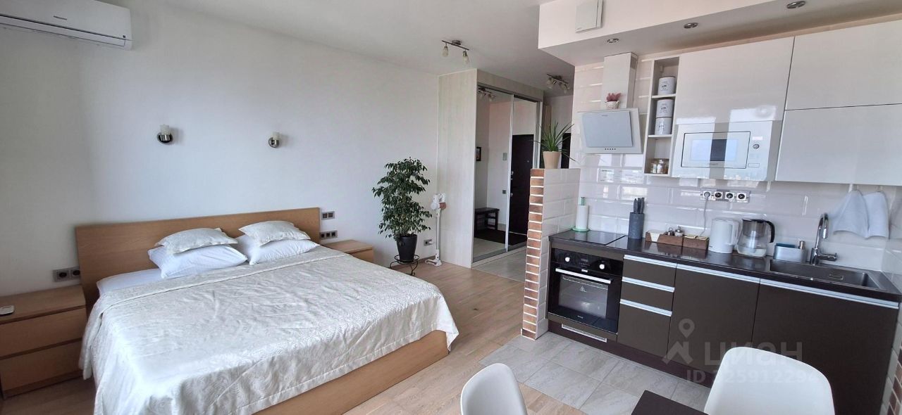 В студии есть всё для комфортного проживания: большая двуспальная кровать с удобным матрасом (180X200) и белоснежным постельным бельём; кухня со всем необходимым (посуда, индукционная плита, духовка, микроволновка, электрический чайник, гейзерная кофеварка, посудомоечная машина, холодильник, чай, кофе); просторный санузел с тропическим душем, белоснежными полотенцами, фен, шампунь и гель для душа, зубные щетки, стиральная машина с функцией сушки белья; быстрый Wi-Fi, TV (120 каналов, сервисы Смотрёшка и Megogo); кондиционер; просторный шкаф для одежды и много плечиков, гладильная доска и утюг, одноразовые тапочки; живые комнатные растения.