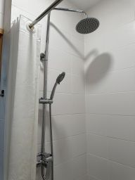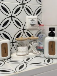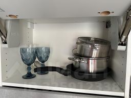 В студии есть мини-кухня, холодильник, микроволновка, плита, чайник, посуда, фен, утюг, полотенца, постельное белье, душевая система с тропическим душем. Кровать с ортопедическим матрасом. Стиральная машина в общем коридоре.