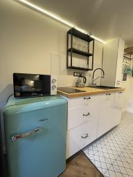 Одной из изюминок этой квартиры является встроенный фильтр для воды, гарантирующий, что у вас будет доступ к чистой воде на протяжении всего вашего пребывания. Когда вы подниметесь по лестнице, вас встретит очаровательное светодиодное освещение лестницы, создающее теплую и располагающую атмосферу.