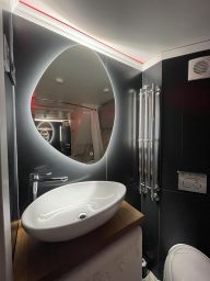 Ванная комната и сама квартира имеют различные уровни освещения, что дает вам полный контроль над обстановкой в соответствии с вашим настроением. Независимо от того, ищете ли вы спокойный отдых или хотите сбежать из оживленного города, эта квартира превзойдет ваши ожидания.
