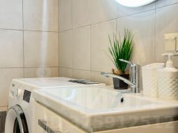 В апартаментах возможно размещение до 4 гостей, спальные места - раскладной диван и двухспальная кровать. На кухне есть вся необходимая техника и посуда: микроволновая печь, электрический чайник, электрическая плита, холодильник. К услугам гостей: стиральная машина, утюг, гладильная доска, Wi Fi, TV.